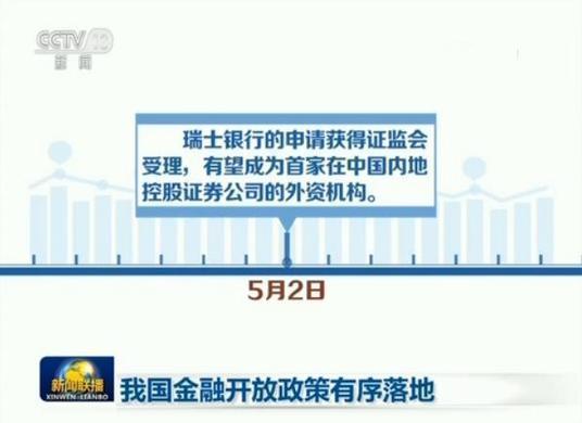 5月2日,瑞士银行的申请获得证监会受理,有望成为首家在中国内地控股证券公司的外资机构。