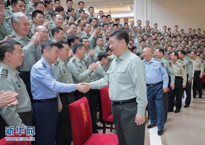 2018年5月16日上午,中共中央总书记、国家主席、中央军委主席习近平视察军事科学院,代表党中央和中央军委,对军事科学院第八次党代表大会的召开表示热烈的祝贺,向军事科学院全体同志致以诚挚的问候。这是习近平亲切接见军事科学院第八次党代会代表。