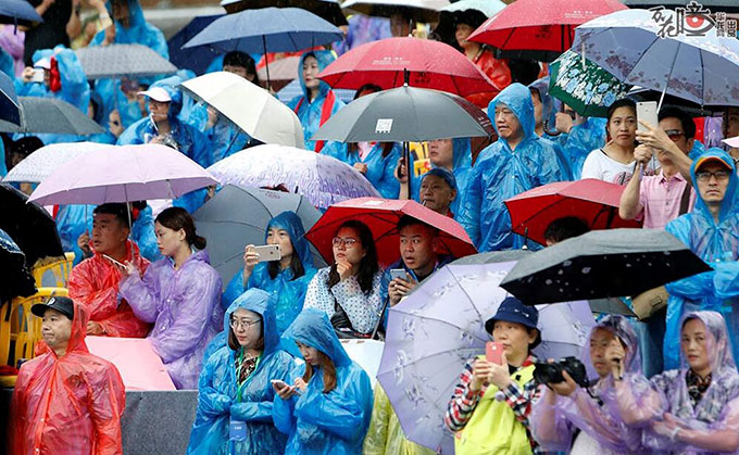 整齐的阵型,划一的动作,层层围绕中心舞台的“娇阿依”们踩着雨点与节奏翩翩起舞,向现场远道而来的游客们诉说着喜悦之情。