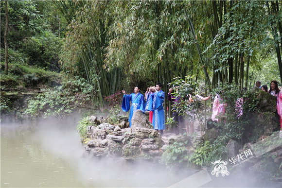 网媒记者们换上秦晋古装步入“世外桃源”。 见习记者 冉桐摄