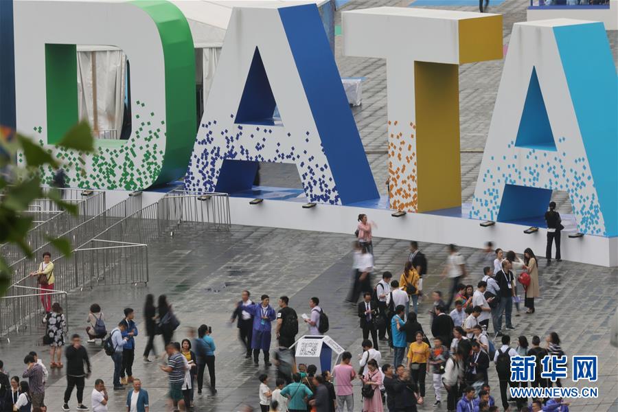 这是5月26日在中国国际大数据产业博览会会场外拍摄的大数据标识。5月26日,中国国际大数据产业博览会在贵州省贵阳市开幕。新华社记者 欧东衢 摄