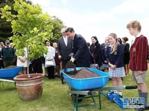 在这群小朋友面前,习近平微笑着和他们打招呼,鼓励他们学好汉语,更多了解中国文化和历史。他们还一起种下了一棵友谊之树。习近平说:“我们要播撒中澳友谊的种子,让它们生根发芽、枝繁叶茂。”