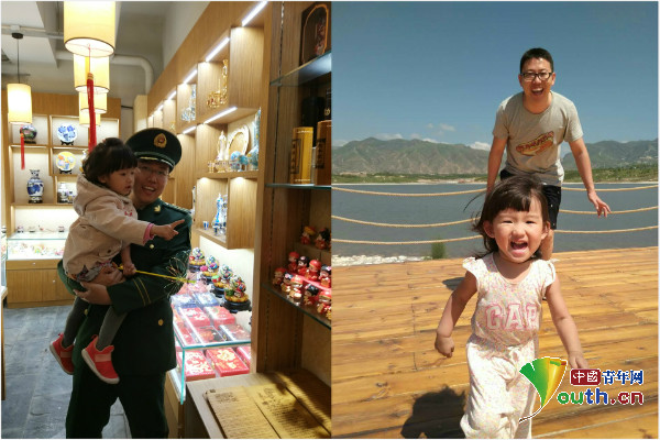 “在家陪女儿的时候,常常会有单位打电话来。记得有一次,茉莉在一旁吵闹着让我陪她玩,我一分神,不小心在关门时夹到了她的手,疼得她大哭一场。但是,茉莉不仅没有怪我,反而变得更加懂事,每次我接电话她都静静地等在旁边,说‘爸爸打电话时我不说话’。还有,茉莉最怕生病时去医院检查要抽血,有一次我告诉她‘你看,旁边的军人叔叔抽血就不害怕,也不哭’,她记得牢牢的,抽指尖血再也不躲不哭,让我感觉孩子小小的身体里藏着军人坚强的基因。”