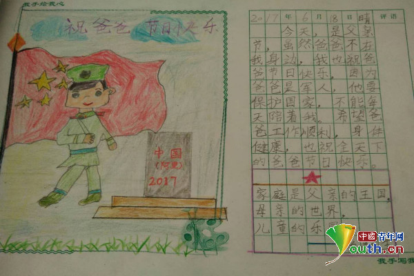 2017年的父亲节,常艳军收到一份千里之外寄来的漫画,儿子在上面写道:虽然爸爸不在我身边,我也祝爸爸节日快乐。因为爸爸是军人,他要保护国家,不能每天陪着我,希望爸爸工作顺利。“当时觉得特别感动,我作为一名军人,无论是对家庭还是对孩子,都亏欠了很多,希望自己能有时间多陪陪他们。”常艳军说。