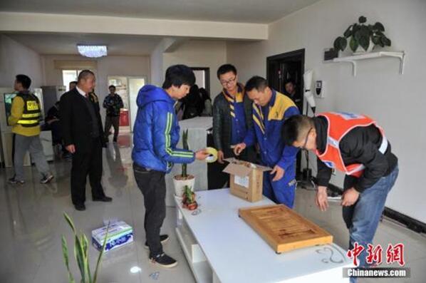 资料图:法院工作人员为“老赖”搬家。中新社记者 任东 摄