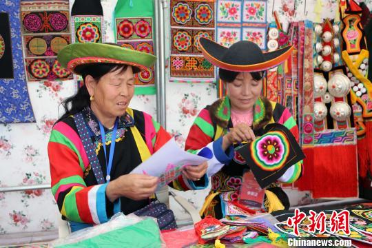 6月9日,2018年中国“文化和自然遗产日”青海主会场活动在该省海南藏族自治州共和县举行。图为土族盘绣展示。 罗云鹏摄