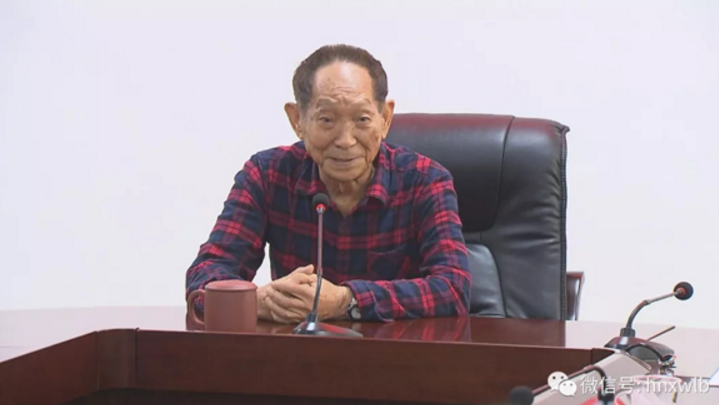 中国工程院院士袁隆平:带盐碱的材料做亲本,再利用这个杂交优势(产量)一下就提高了,去年我们小区的产量过了600公斤。
