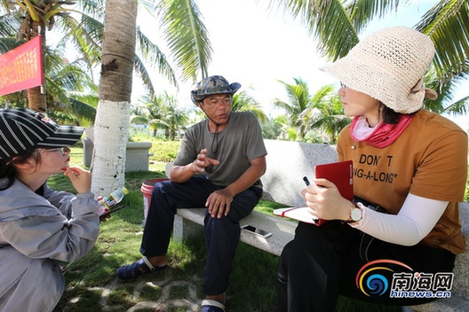 “新时代·幸福美丽新边疆”海南行网络主题采访团记者采访三沙市赵述岛上的渔民。南海网记者陈望摄
