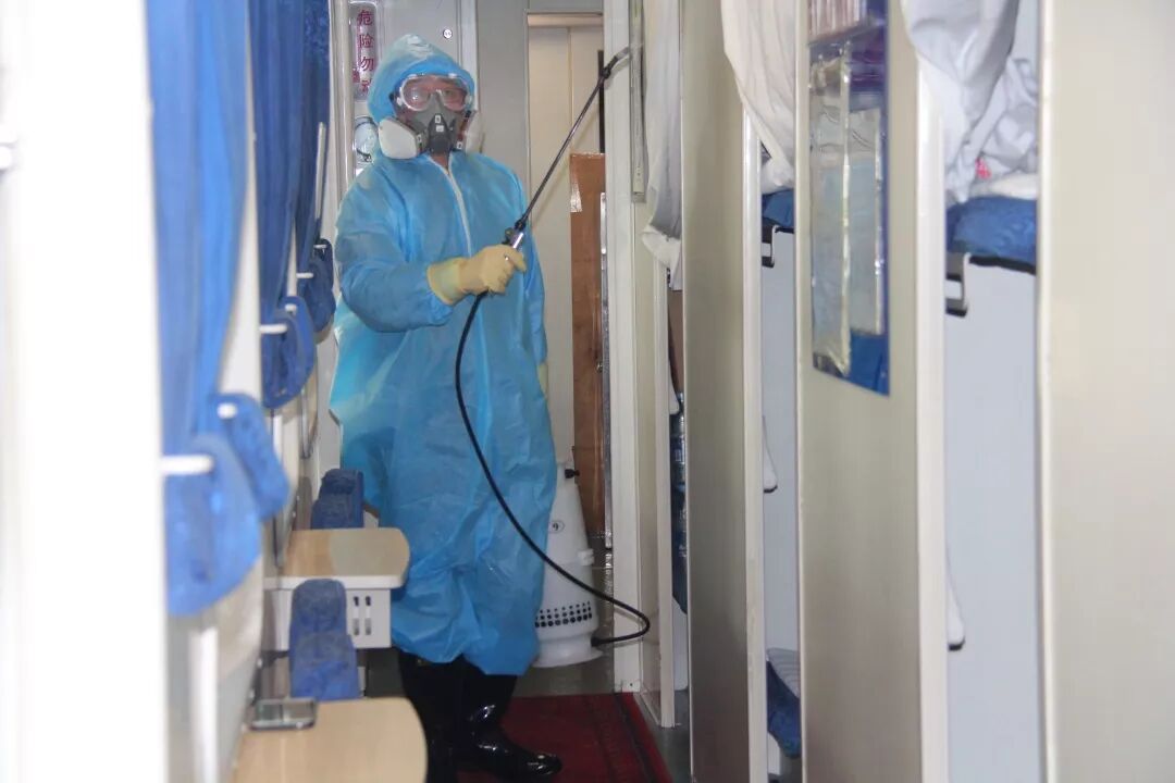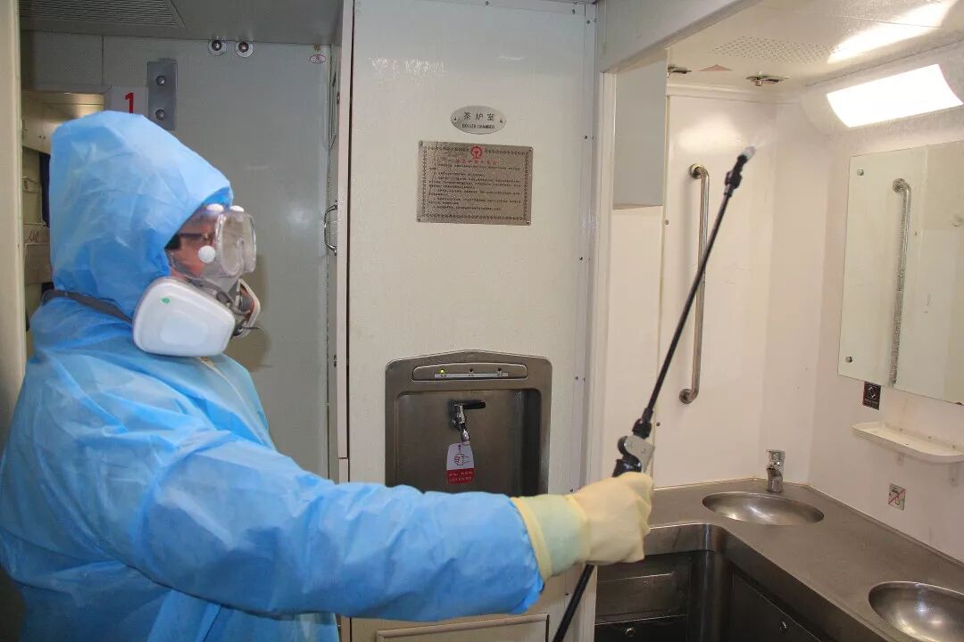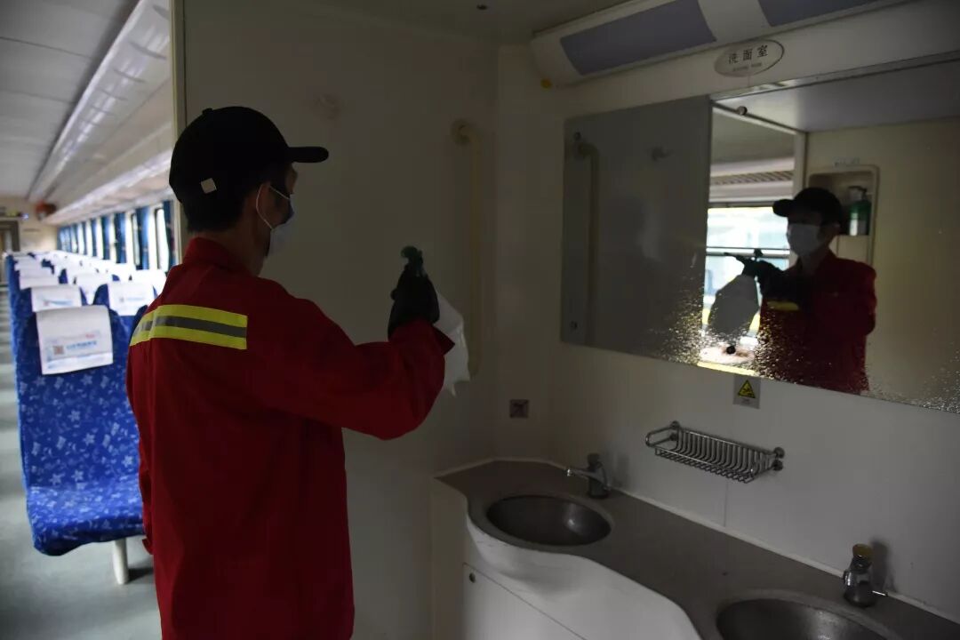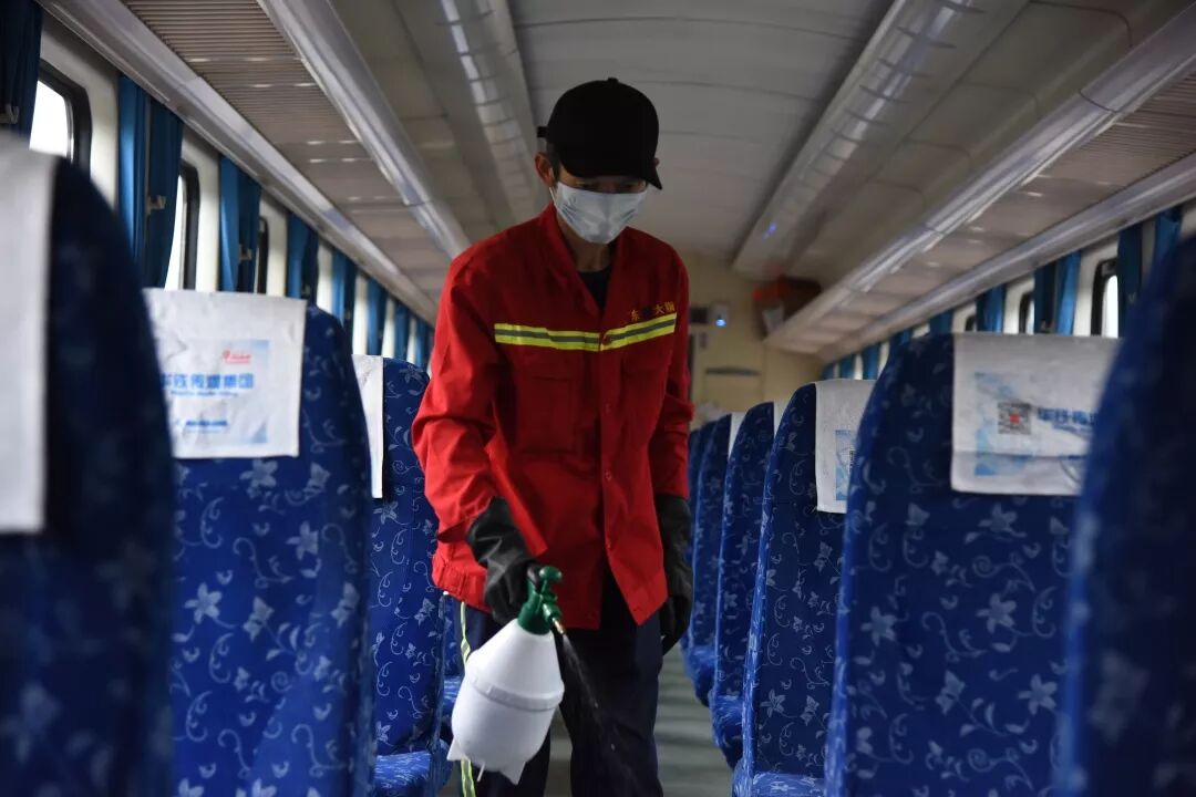 自疫情蔓延以来,广州局集团公司要求每趟旅客列车上线运行前,必须进行全面消毒和保洁。按照这一要求,广州客运段加强了列车消毒保洁力度。
