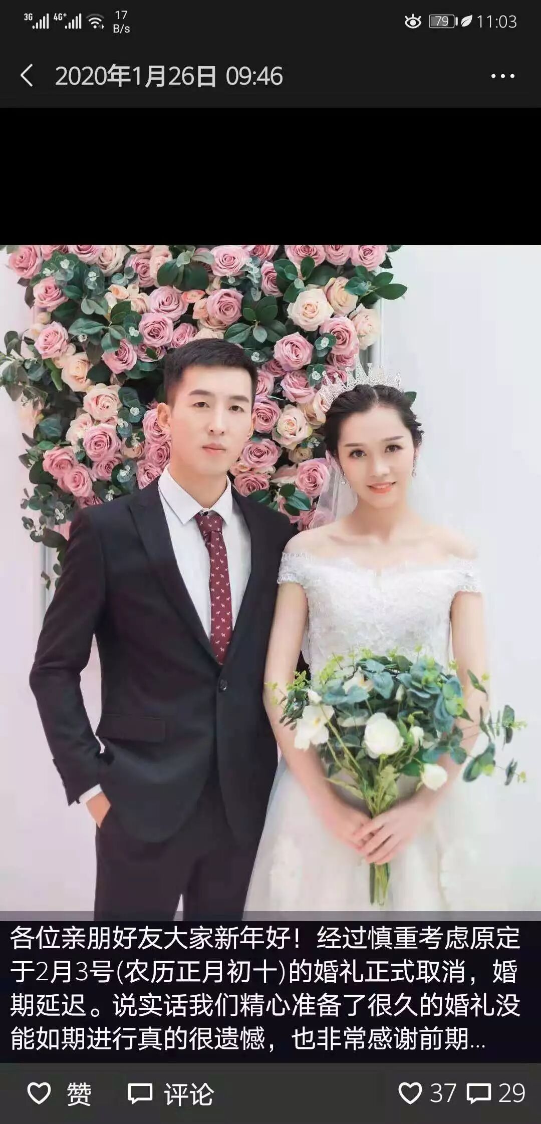 “等疫情结束后我们再结婚!”