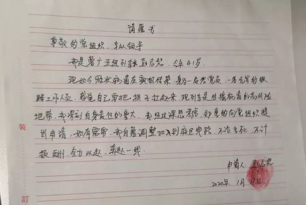 面对当下的疫情,彭志慧希望能做一些自己力所能及的事,在得到了丈夫与儿子的理解后,写下了自愿出乘通过疫情严重区域线路的请愿书。