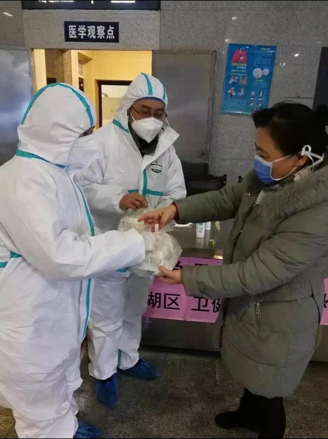 除了在车站做志愿者,邹德凤还不忘抽空去医院病房,看望春节仍坚守在临床一线的医护人员,为住院病人做防疫知识科普。“病房要多开窗通风,在室内也要注意戴好口罩。”邹德凤一边叮嘱病人及家属注意防护一边指导患者如何正确佩戴口罩。“我们虽然不是定点救治医院,但是我们的医护人员也要注意做好防护,勤洗手,早晚测体温。”邹德凤关切地与护士说。