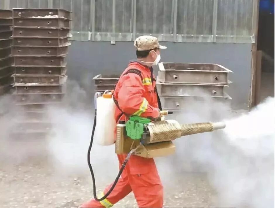 近日,山东省平度市店子镇应急管理人员在即将复工复产的企业进行消杀。周凯 摄