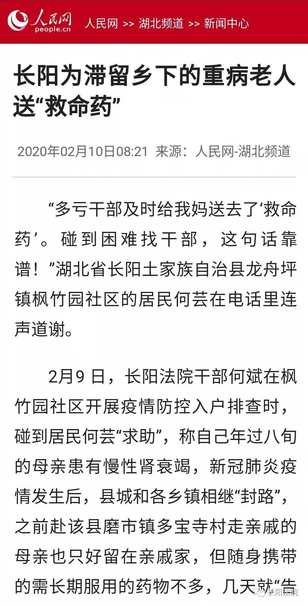 “阿姨,您的药买到了。”湖北省长阳土家族自治县人民法院干警谭树君将买到的药交到社区居民手中,收获的是连声感谢和真挚的笑容。