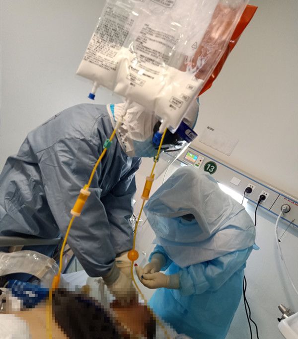 受到防护服以及护目镜阻碍,给一名气管插管患者翻身时可能需要3名护士同时进行,一人翻身,一人进行床铺整理,更换尿垫,保证患者皮肤清洁干燥以及受压部位皮肤观察,一人进行病情的观察,保护管路,避免脱管。尽管今工作量很大,还有很多其它护理工作,但是我们所有人都能够克服,保证每一位患者都得到全面护理。