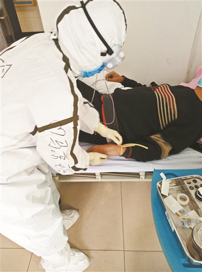 定点收治救治医院内,垂杨柳医院的医护人员正在救治患者