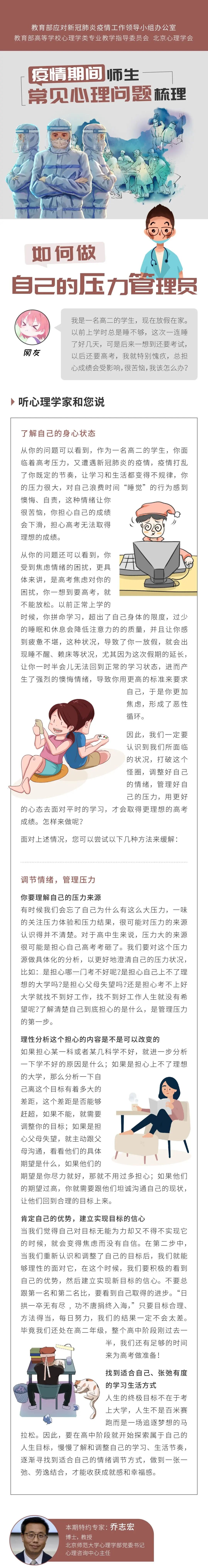 今天,推出《用“心”战“疫”》第⑮期,随教育小微一起来听北京师范大学乔志宏教授、中山大学李桦教授详解,疫情期间师生常见心理问题如何调整↓↓↓