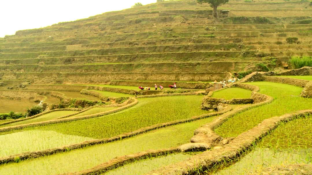 在大家劳作休息的间隙,能歌善舞的哈尼族同胞们唱起了山歌,歌唱幸福新生活,祈求风调雨顺,粮食能够大丰收。