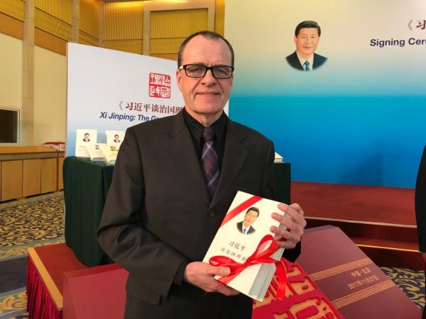 大卫·弗格森手持《习近平谈治国理政》。外文出版社供图