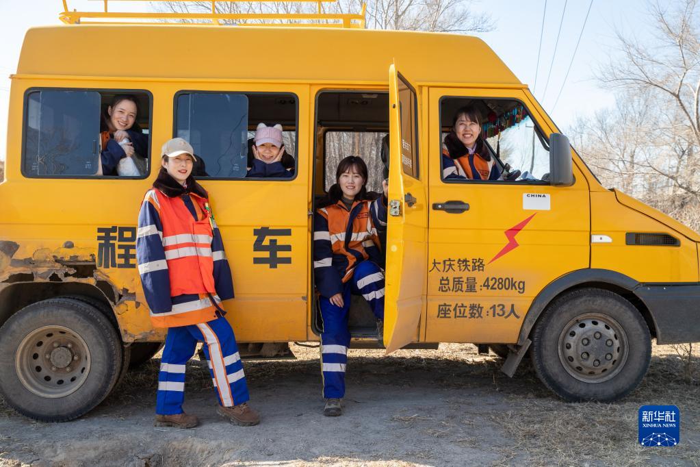 这是3月6日拍摄的女子检验班在滨洲线199公里处的合影。 新华社记者 张涛 摄