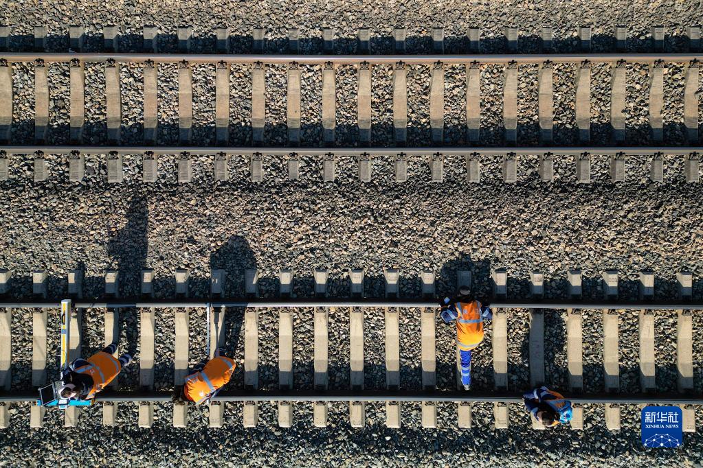 这是3月6日拍摄的女子检验班在高家伊品走行线进行作业(无人机照片)。 新华社记者 张涛 摄
