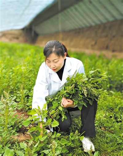 从本科到博士期间,吴夏蕊查阅了大量古籍和文献,她的想法有了初步的理论支持。2013年,她接触到了被誉为“植物黄金”的藜麦,其营养价值高且耐旱、耐盐碱。“我当时就想,家乡的盐碱地能不能种植?”吴夏蕊回到宁夏采集多处土壤样品,对比原产地气候,在实验室试种,并进行品种初选。