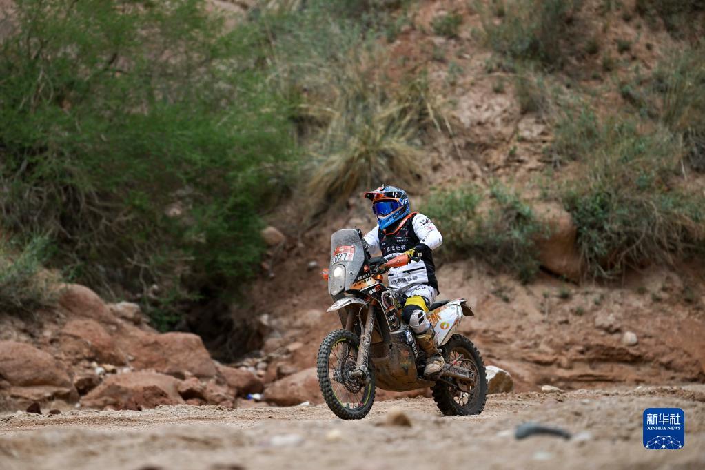 5月21日,新疆枭龙无路野弛俱乐部车队车手买买提·艾合买提在比赛中。新华社记者 胡虎虎 摄