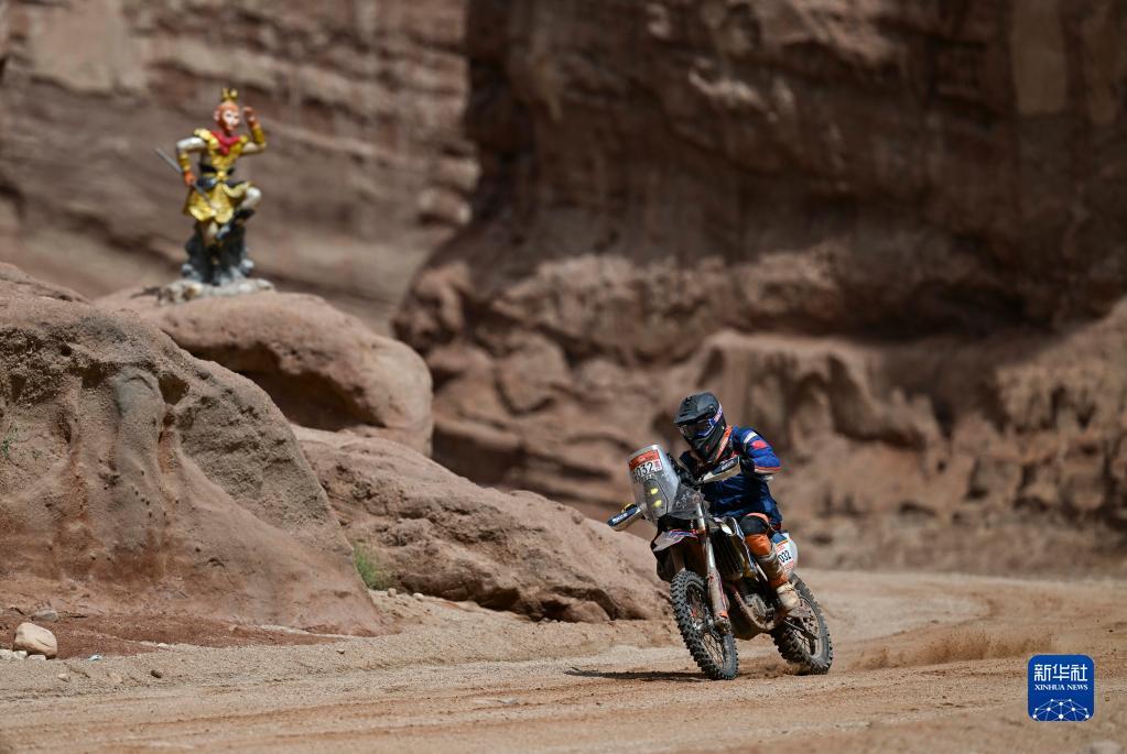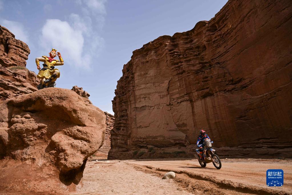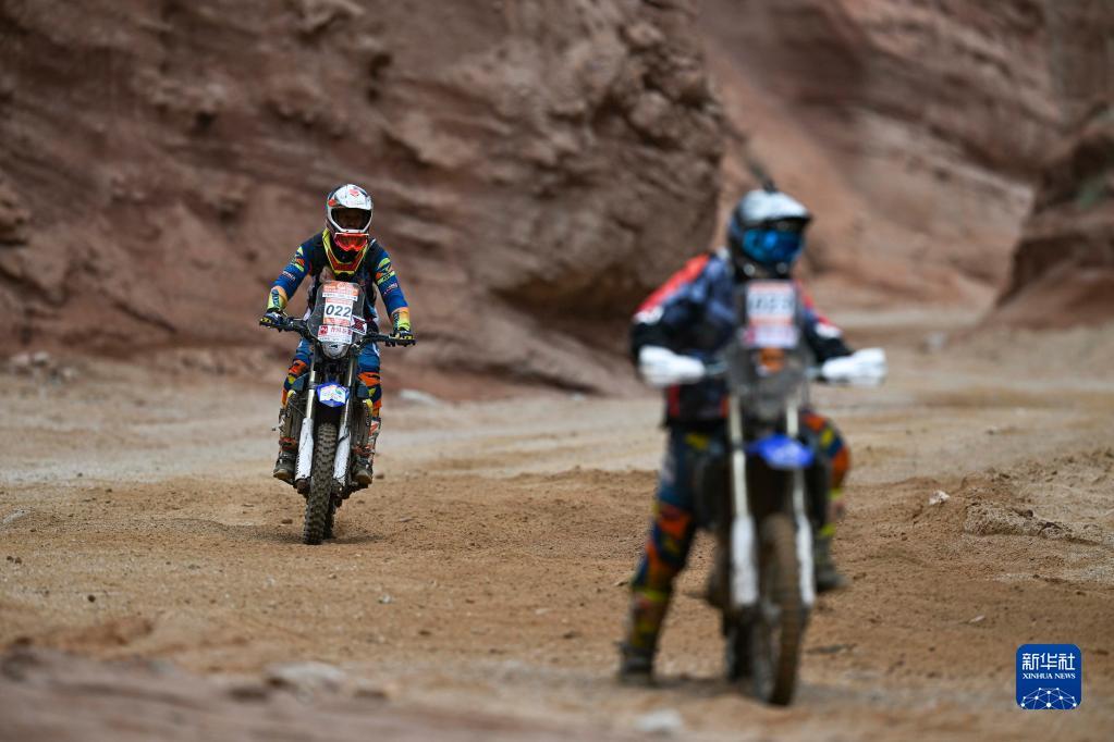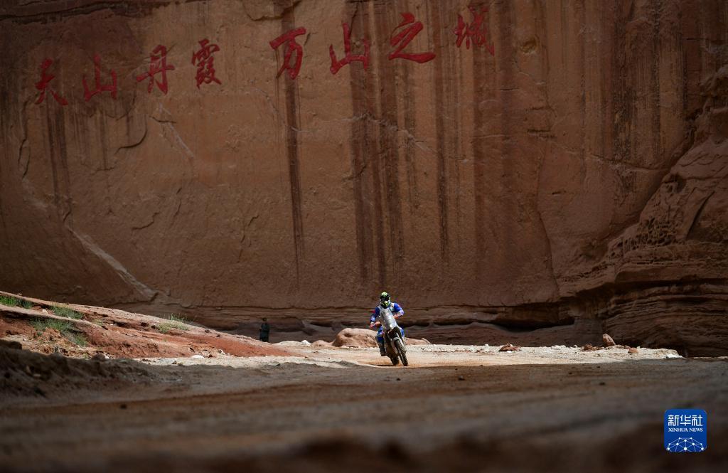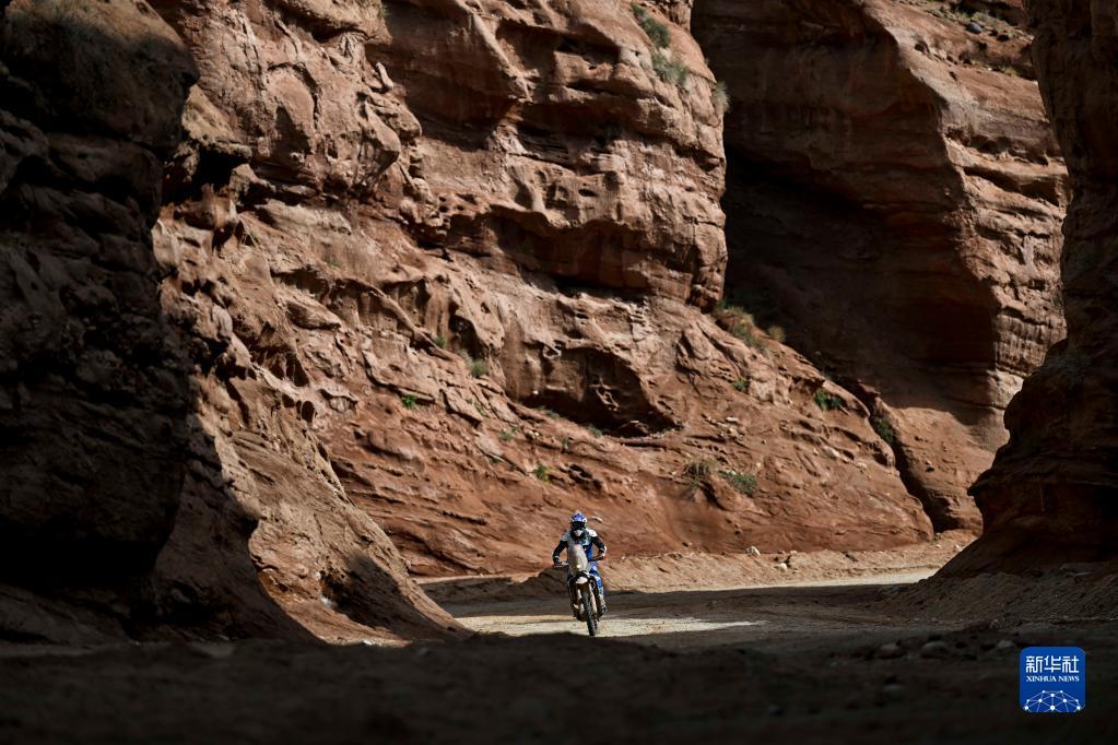 5月21日,阿克苏悟空车队车手周田、领航员姜旭龙驾驶赛车穿行在峡谷中。新华社记者 胡虎虎 摄