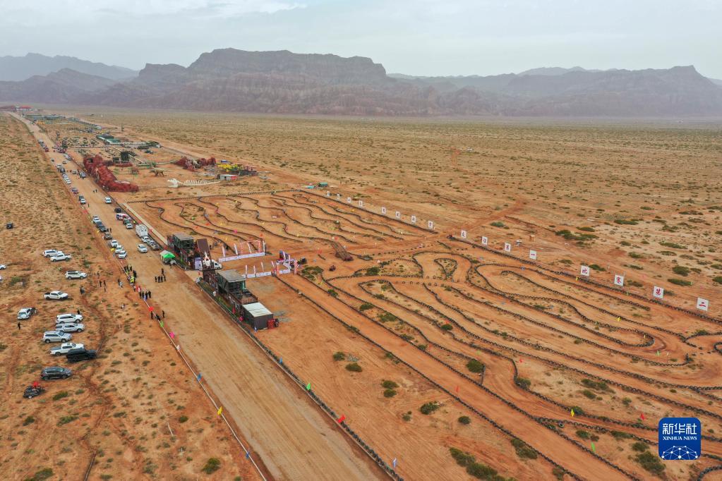 越野爱好者在2023环塔拉力赛首个特殊赛段的终点处等候赛车(无人机照片,5月21日摄)。新华社记者 胡虎虎 摄