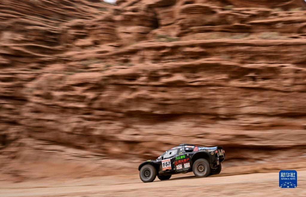 5月21日,黑龙江龙嘉先越拉力艺车队车手王显峰、领航员刘大彬驾驶赛车疾驰在赛道上。新华社记者 胡虎虎 摄