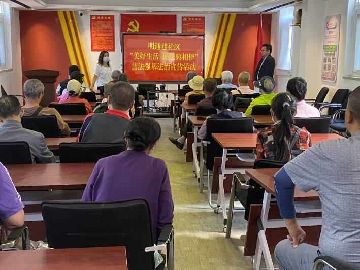 近日,拓东司法所携手明通巷社区组织辖区楼栋组长和热心居民开展普法强基补短板暨“美好生活 民法典相伴”普法宣传活动。