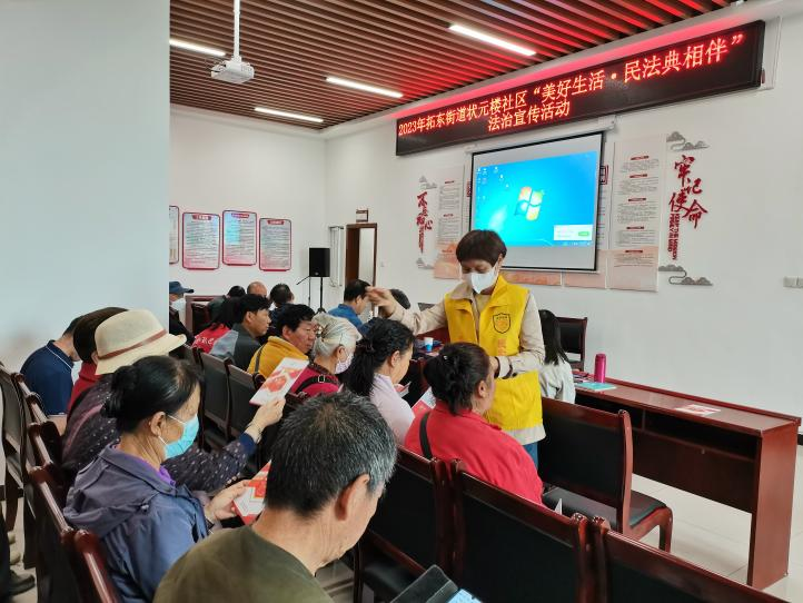 近日,状元楼社区以人大代表进社区活动为契机,对参会人员开展法律宣传。