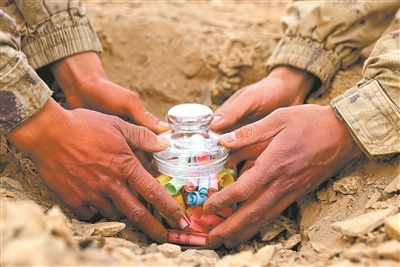 图①:老兵们埋下“心愿瓶”。代晨曦摄