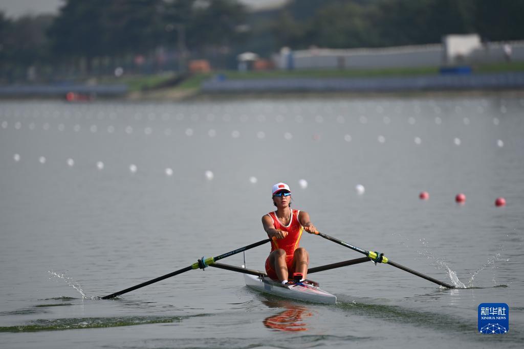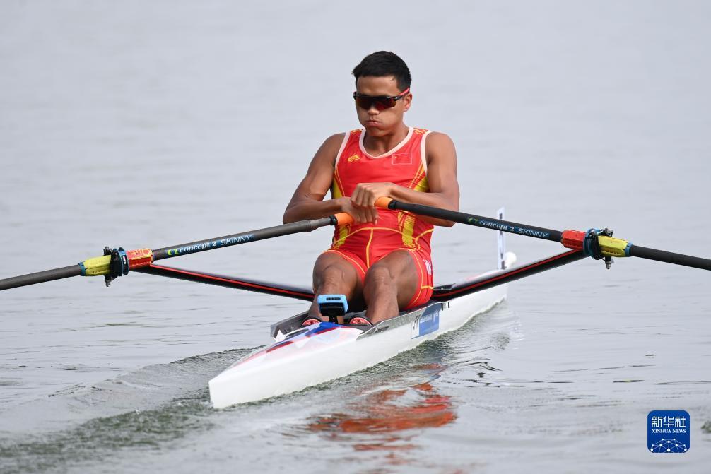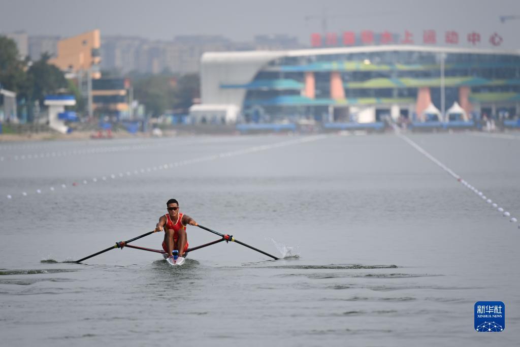 8月4日,中国选手陈卫春在男子单人双桨预赛中,他7分19秒49的成绩晋级半决赛。新华社记者 蔡湘鑫 摄
