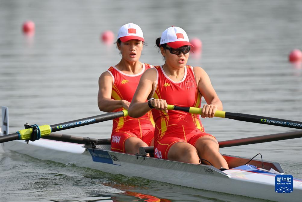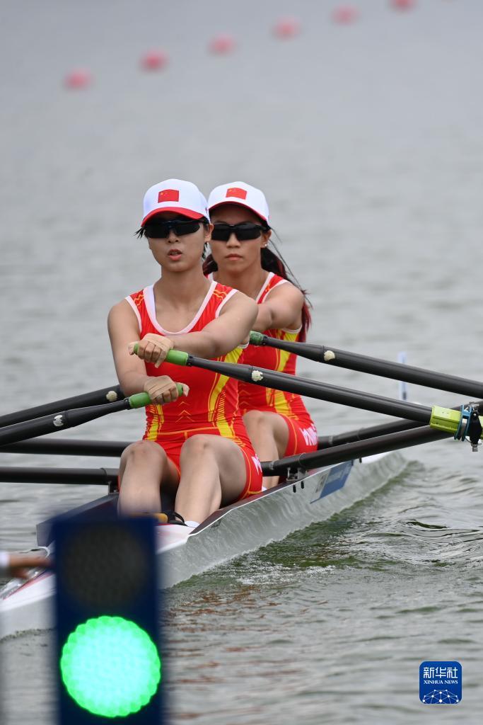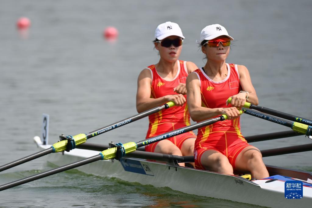 8月4日,中国组合黄一帆/周佳惠在女子双人双桨预赛中,她们以7分30秒12的成绩进入复活赛。新华社记者 蔡湘鑫 摄