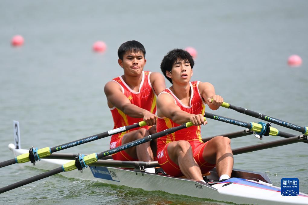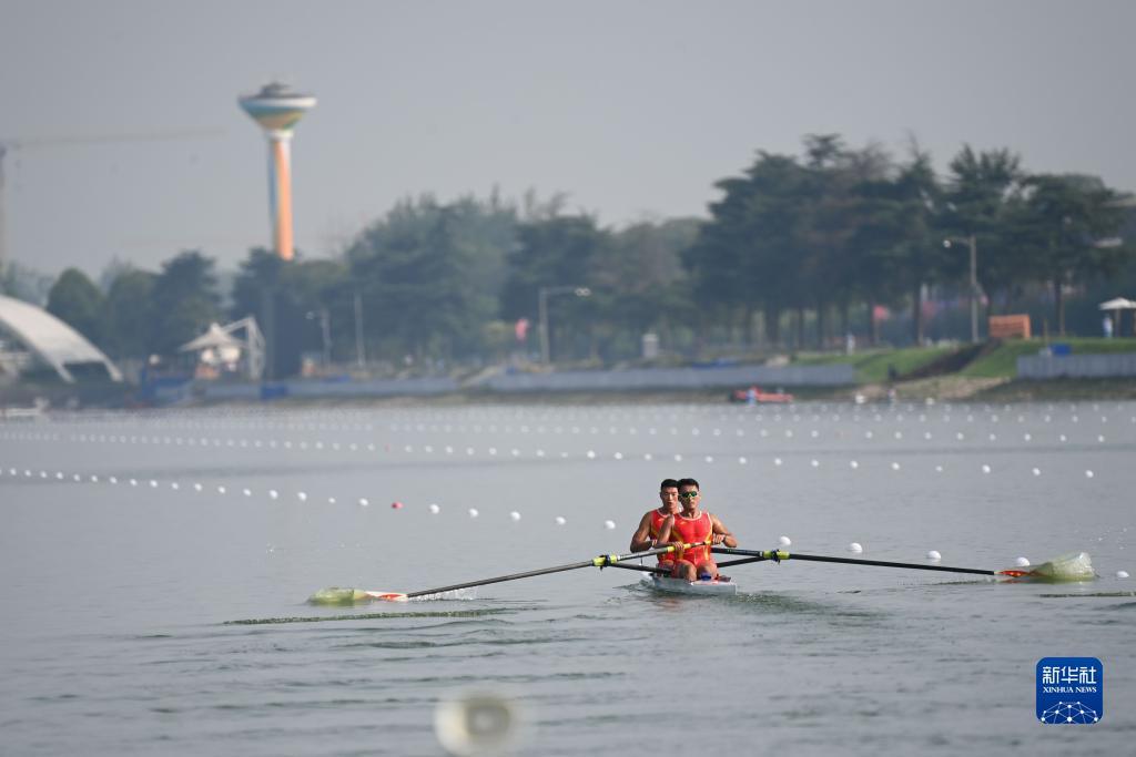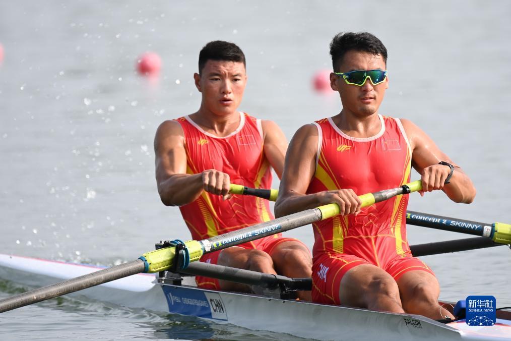 8月4日,中国组合倪旭林/陈卫春在男子双人双桨预赛中,他们以7分09秒13的成绩进入复活赛。新华社记者 蔡湘鑫 摄