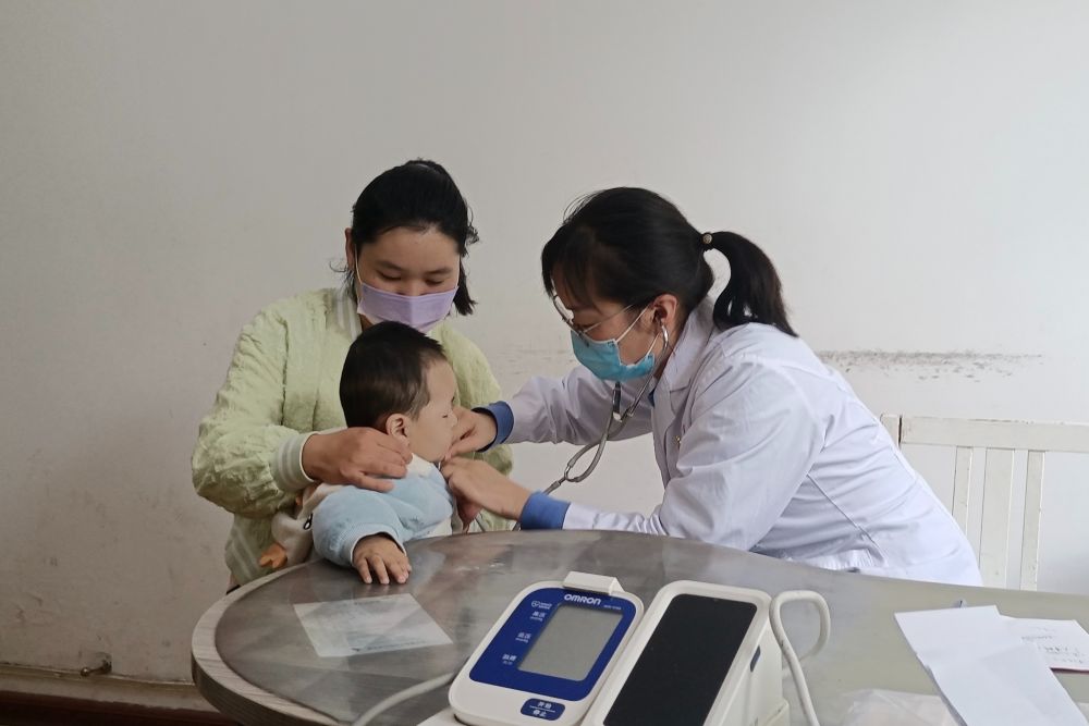 西宁市第三人民医院儿科负责人李海萍(右)正在为幼儿查体。(受访者供图)