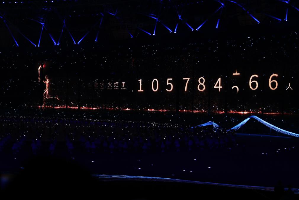 9月23日,数字火炬手在开幕式上进行火炬传递。新华社记者朱峥摄