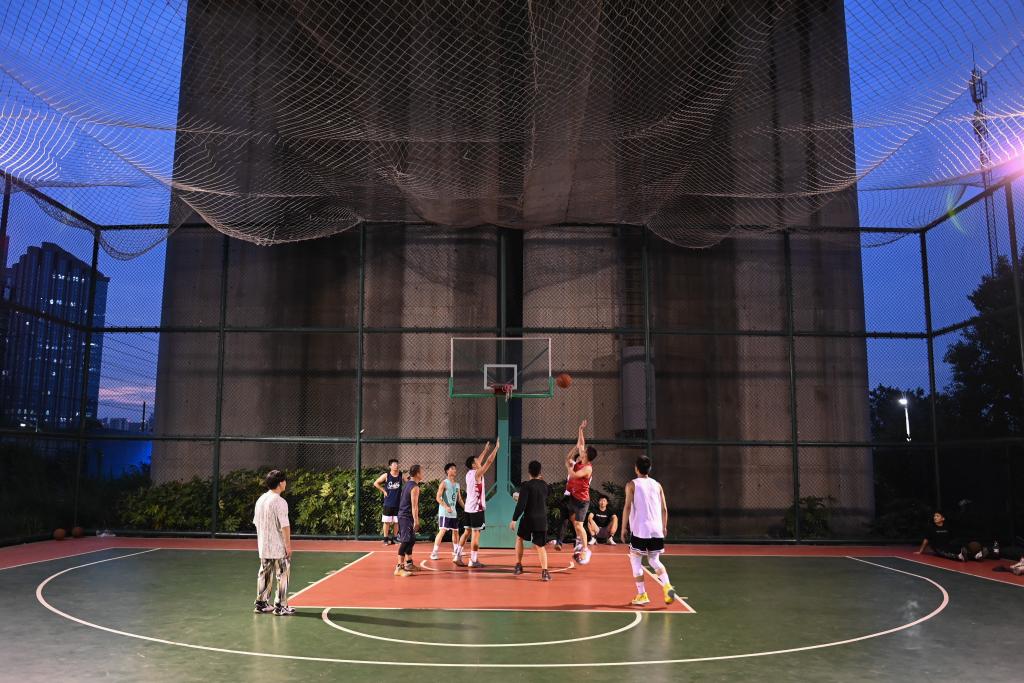 2022年9月20日,市民在位于高铁桥下的钱江世纪城体育公园打篮球。新华社记者黄宗治摄
