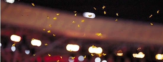 体育场落下“桂花雨”。 记者 倪雁强 摄