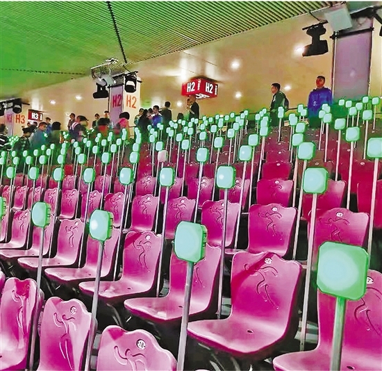 在离“大莲花”不远处的综合训练馆,是赛事总指挥部所在地。当晚大屏上显示了“大莲花”各个出入口和地铁口的人员密度,为开幕式观众顺利离场、快速调度提供决策依据。