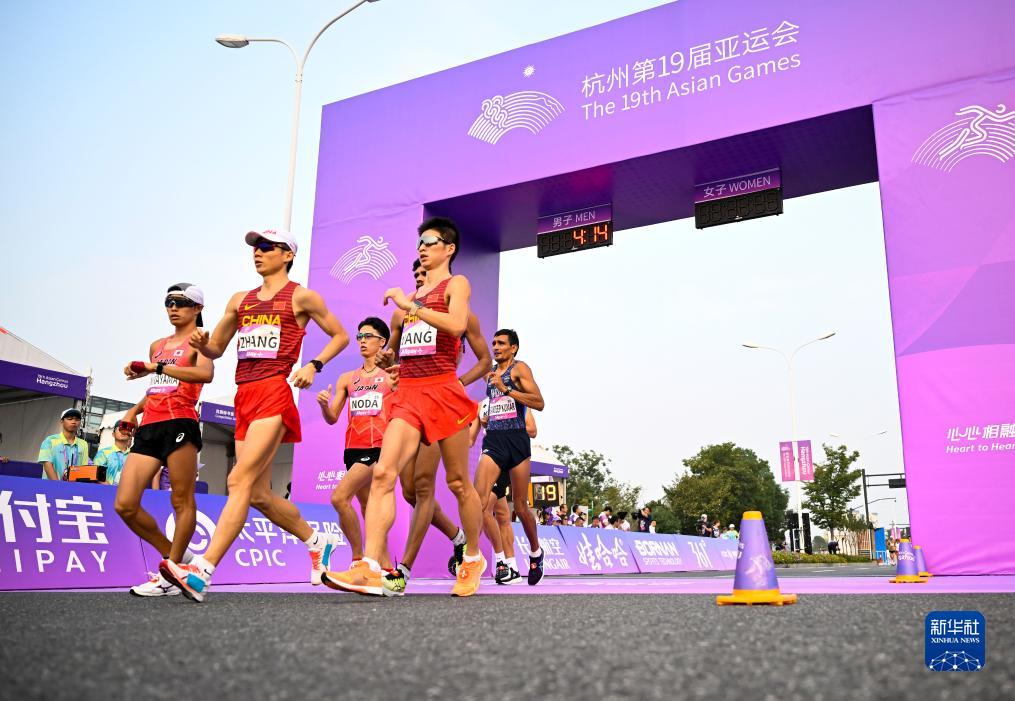 当日,在杭州智慧新天地沿江景观带举行的杭州亚运会田径男子20公里竞走决赛中,中国选手张俊以1小时23分00秒的成绩夺得冠军,王朝朝获得亚军。