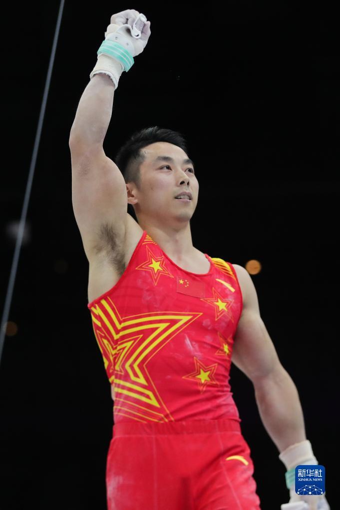9月30日,中国队选手尤浩在男子资格赛吊环比赛后。新华社记者 郑焕松 摄