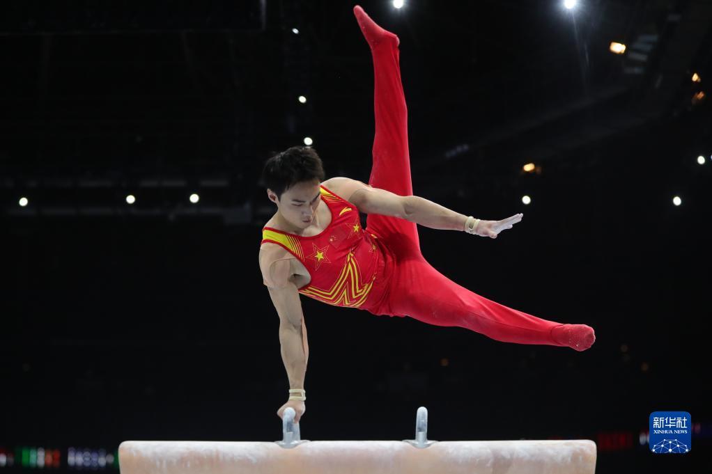 9月30日,中国队选手孙炜在男子资格赛鞍马比赛中。新华社记者 郑焕松 摄(郑焕松 赵丁喆)
