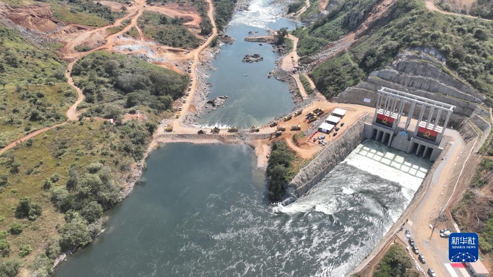 这是2023年5月20日在安哥拉北宽扎省拍摄的凯凯水电站截流仪式现场(无人机照片)。凯凯水电站项目位于安哥拉最大河流宽扎河中段,计划装机容量2172兆瓦。水电站建成后,年平均发电量将达到8566吉瓦时,每年减少温室气体排放量约720万吨,兼具调峰防洪功能。