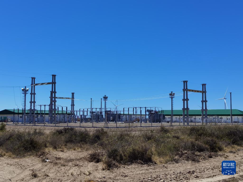 这是2021年1月22日在阿根廷玛德琳港拍摄的罗马布兰卡风电项目一期和三期变电站。中国企业投资承建的阿根廷赫利俄斯风电项目群罗马布兰卡一期、三期项目于当日并入阿根廷国家电网系统,正式投入商业运营。