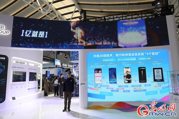 杭州亚运会的开幕式上巨型"数字人"点亮火炬成为最引人注目的创新亮点,成为科技与人文有机结合的一次完美展示。图为2023年11月7日,“互联网之光”博览会上展示杭州亚运会的创新技术。(光明网记者崔益明/摄)