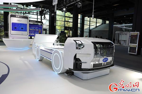 作为践行工业+互联网的智能制造企业,工业富联展示了如何利用AI等新兴技术,实现智造升级与产品创新,并带来一系列产业数字化转型解决方案。图为2023年11月7日,“互联网之光”博览会上工业富联展示的汽车模型。(光明网记者崔益明/摄)