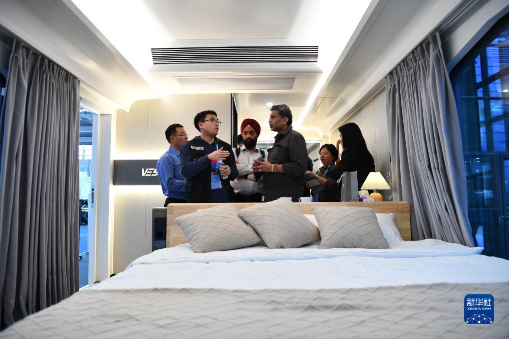 11月15日,观众在第二十五届高交会上了解一款微宿客舱。