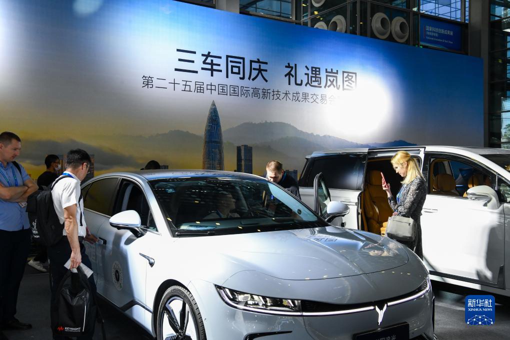 11月15日,观众在第二十五届高交会岚图展台了解一款新能源汽车。